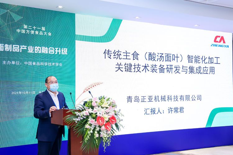 在10月11日“面制品產(chǎn)業(yè)的融合升級(jí)”專題會(huì)議中我司總經(jīng)理許常君先生以“智能化加工關(guān)鍵技術(shù)裝備研發(fā)與集成應(yīng)用”的主題分享了我司在研發(fā)傳統(tǒng)地方特色美食(酸湯面葉)工業(yè)化生產(chǎn)過程中的創(chuàng)新與突破。
